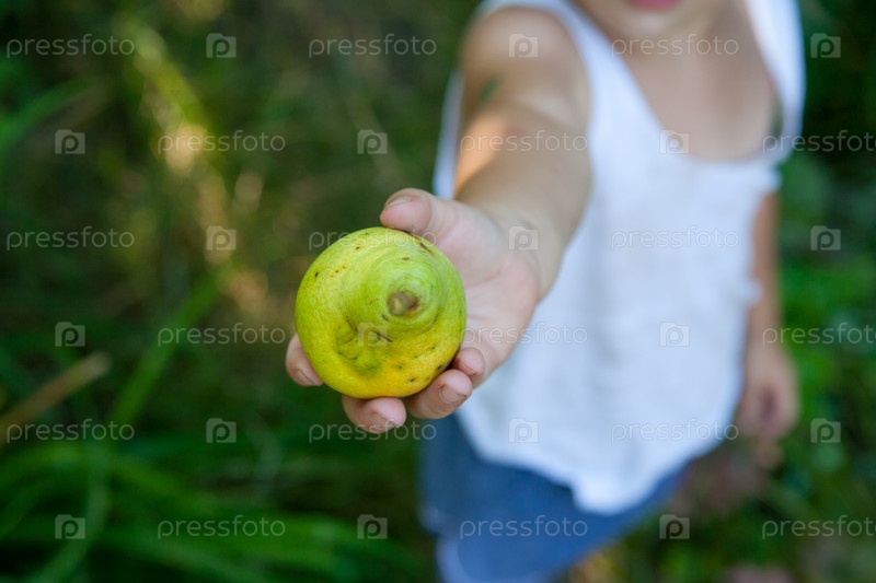 Груша в руке ребенка