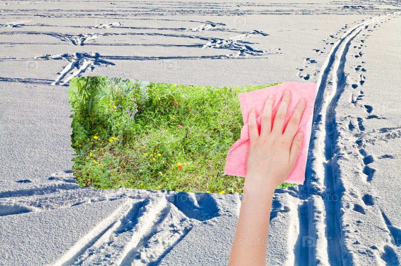 Рука с губкой удаляет снег з
