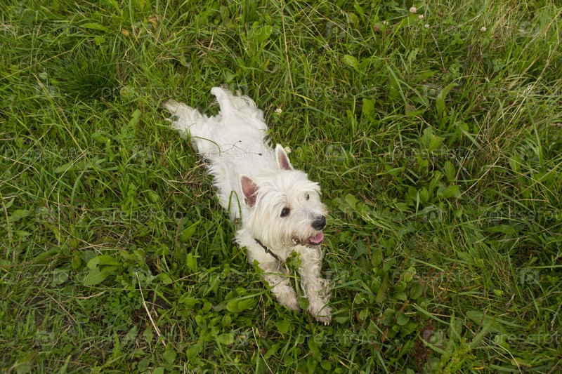 Вест хайленд уайт терьер лежит на траве