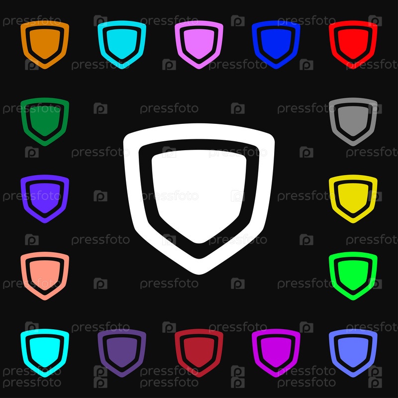 Щит значок знак. Много красочных символов для вашего дизайна. Вектор