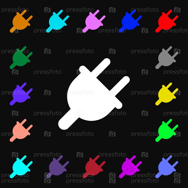 Электрическая вилка, сила энергии значок знак. Много красочных символов для вашего дизайна. Вектор