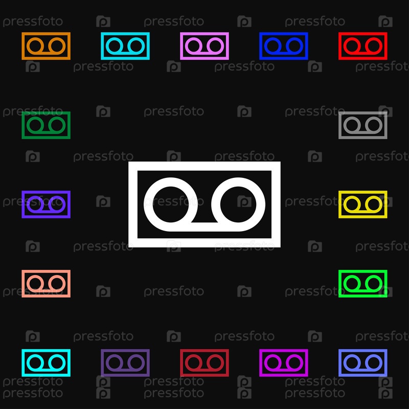 Аудио кассета значок знак. Много красочных символов для вашего дизайна. Вектор