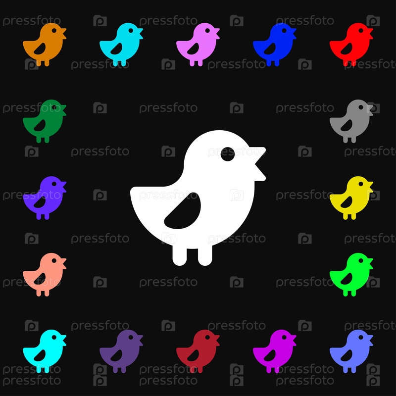 Курица, птица значок знак. Много красочных символов для вашего дизайна. Вектор