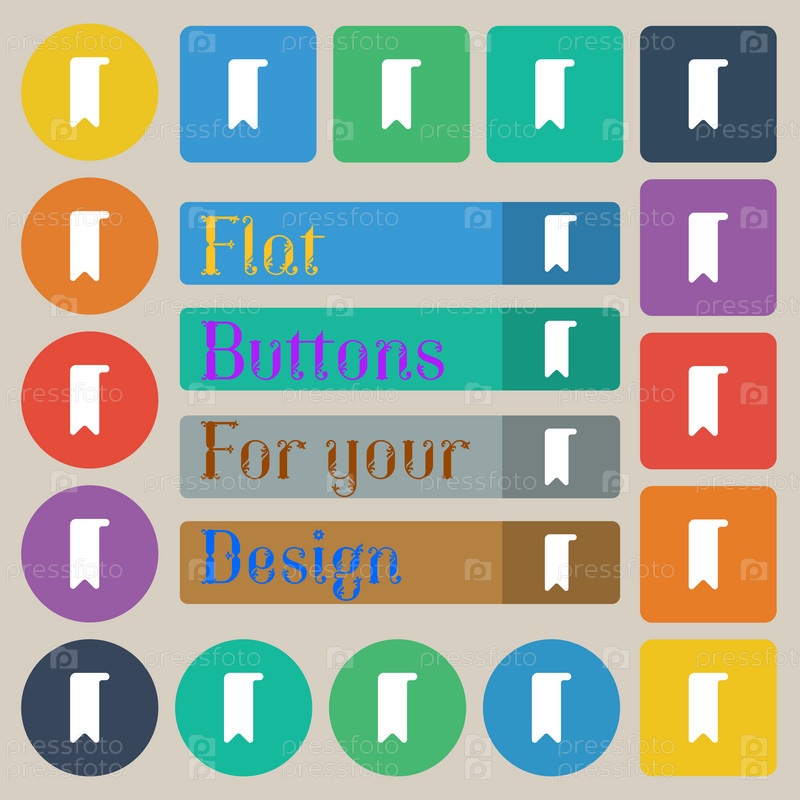 Закладка значок знак. Набор двадцати цветные плоские, круглые, квадратные и прямоугольные кнопки. Вектор