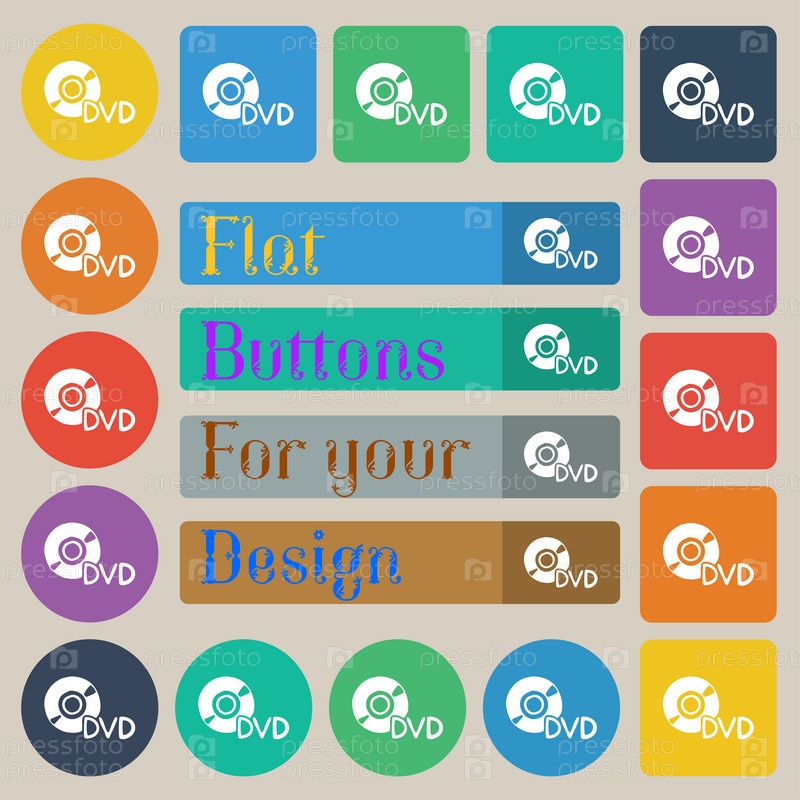 Набор из двадцати цветовых плоских, круглых, квадратных и прямоугольных кнопок