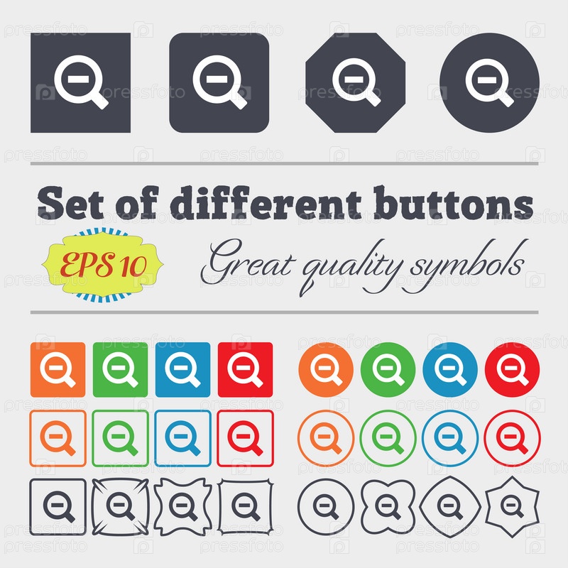 Лупа стекла, зум инструмент значок знак большой набор красочных, разнообразных, высококачественных кнопок. Вектор