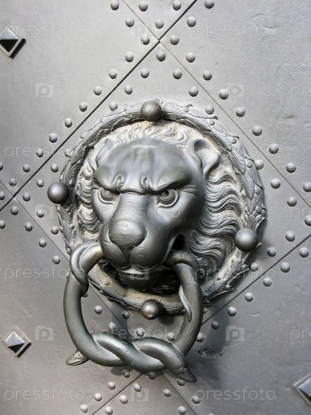 Бронзовый стукач в форме головы льва из ворот замка Residenzschloss в Дрездене, Германия