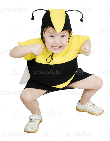 Портрет девочки в костюме пчелки на белом фоне