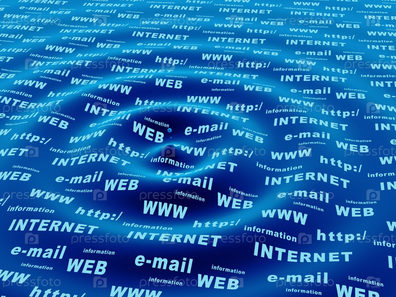 Синий фон с символами интернета