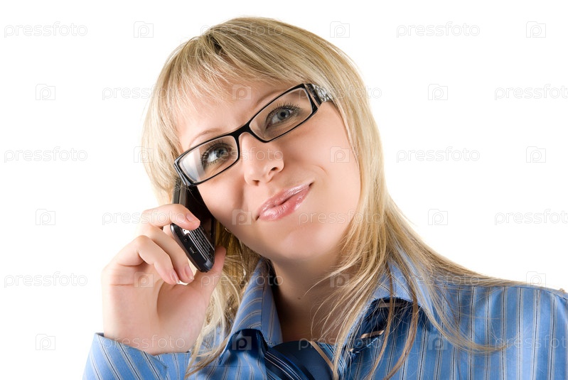 Деловая женщина в очках разговаривает по телефону