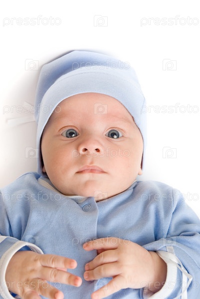 Младенец в голубой одежде лежит на спине