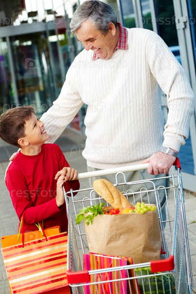 Дед с внуком в супермаркете