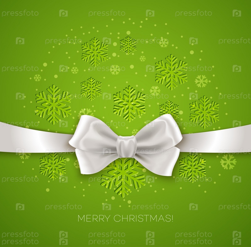 Зеленый Рождество фон ленты с белой шелковой лук