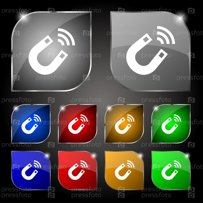 Магнит значок знак. Набор из десяти красочных кнопок с антибликовым покрытием. Вектор
