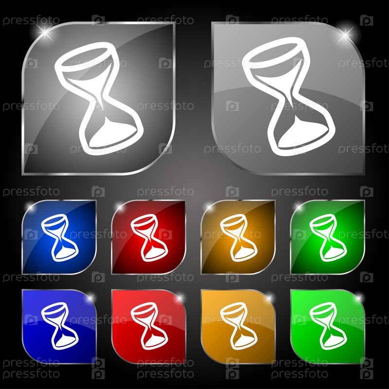 Песочные часы значок знак. Набор из десяти красочных кнопок с антибликовым покрытием. Вектор
