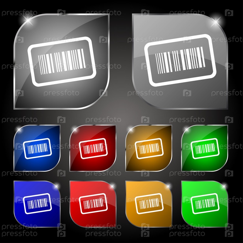 Штрих-код значок знак. Набор из десяти красочных кнопок с антибликовым покрытием. Вектор