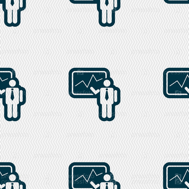 Бизнесмен, делая доклад значок знак. Бесшовный фон с геометрической текстурой. Вектор