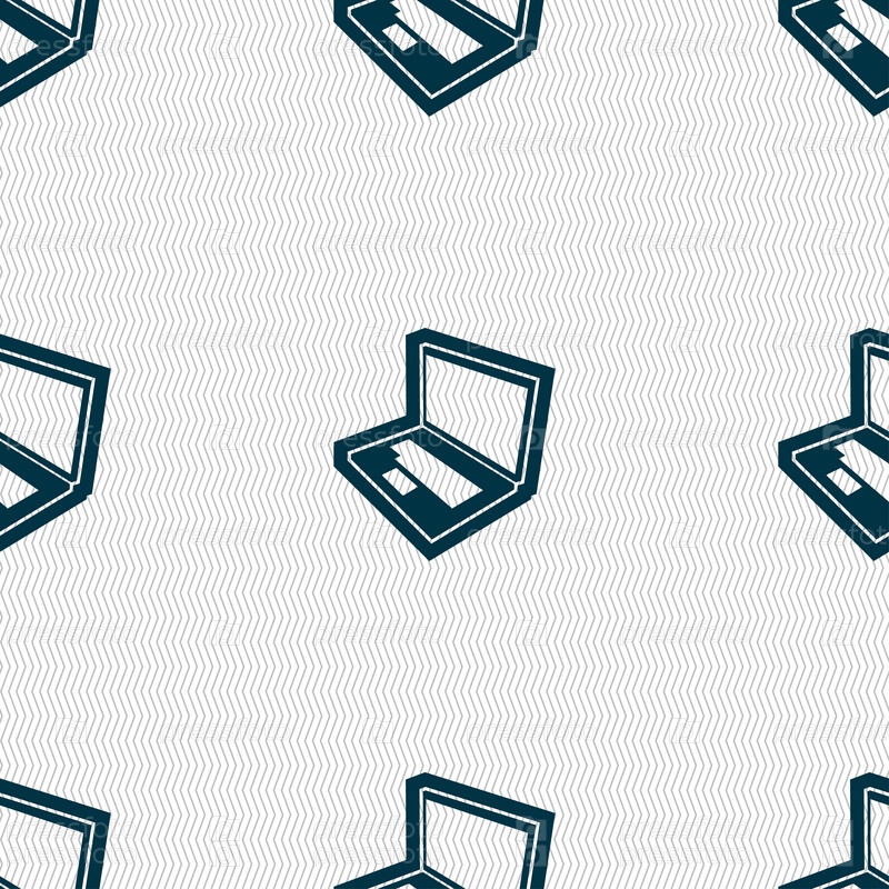 Ноутбук значок знак. Бесшовный фон с геометрической текстурой. Вектор