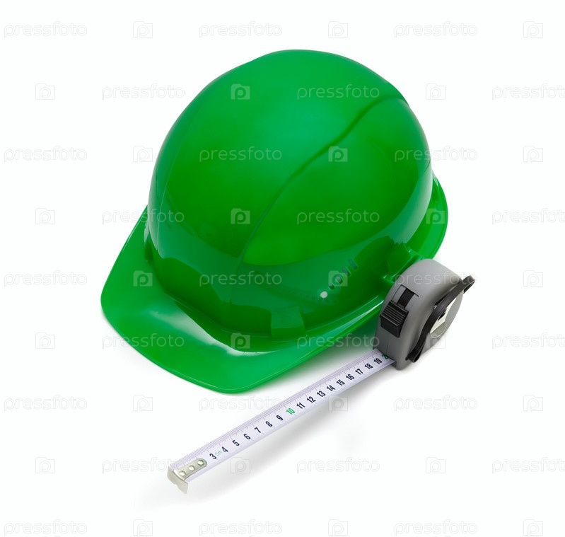 Зеленая защитная каска и рулетка