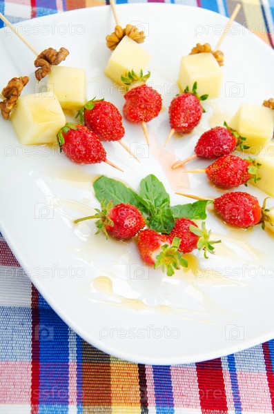 Фруктовые канапе на тарелке