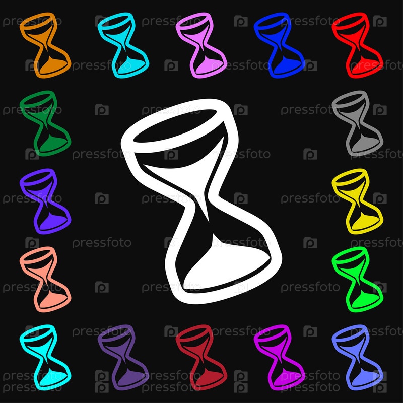 Песочные часы значок знак. Много красочных символов для вашего дизайна. Вектор