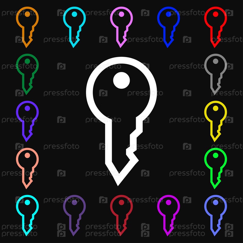 Значок ключа знак. Много красочных символов для вашего дизайна. Вектор