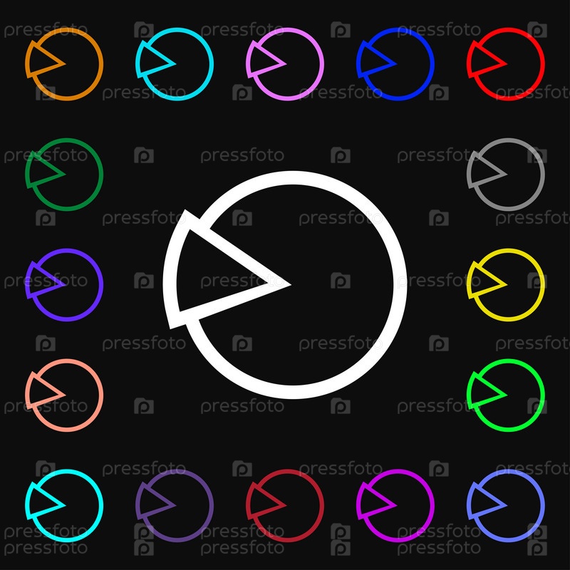 Круговая диаграмма график значок знак. Много красочных символов для вашего дизайна. Вектор
