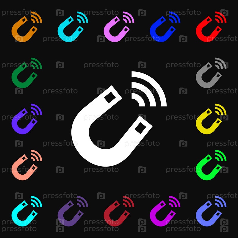 Магнит значок знак. Много красочных символов для вашего дизайна. Вектор