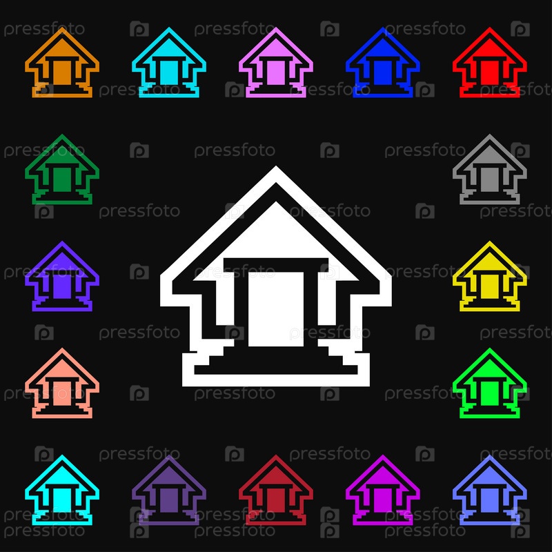 Дом значок знак. Много красочных символов для вашего дизайна. Вектор