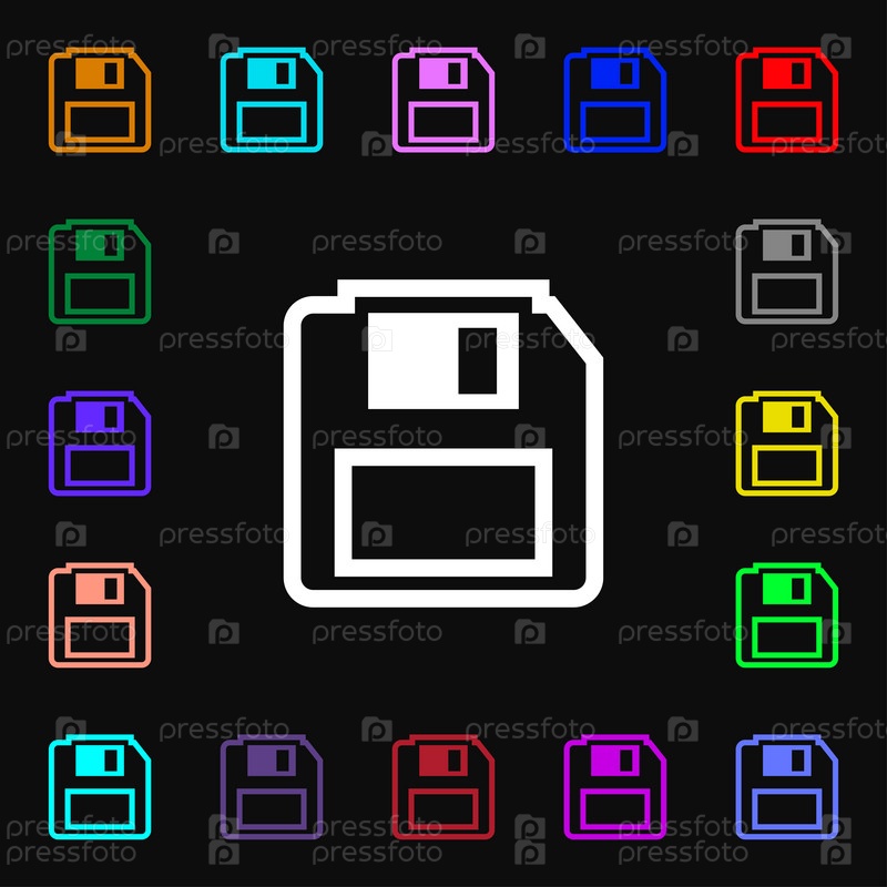 Дискета значок знак. Много красочных символов для вашего дизайна. Вектор