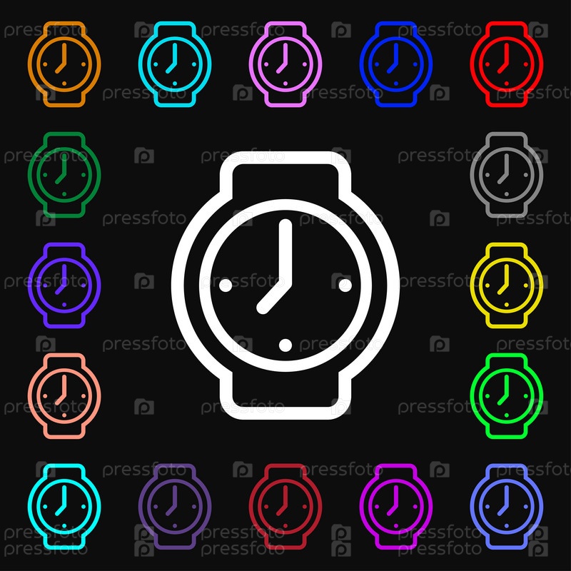 Часы значок знак. Много красочных символов для вашего дизайна. Вектор