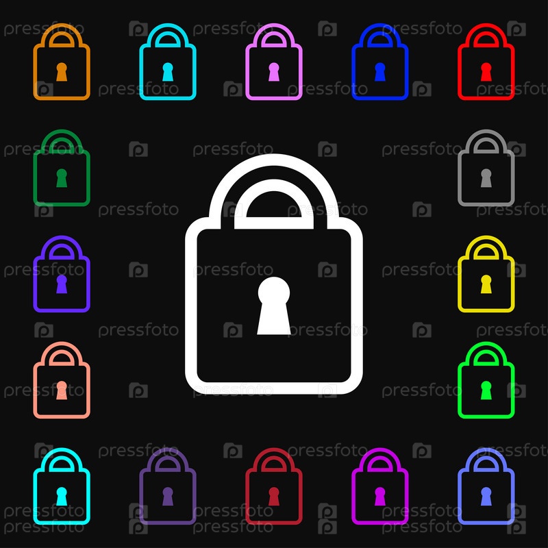 Значок блокировки знак. Много красочных символов для вашего дизайна. Вектор
