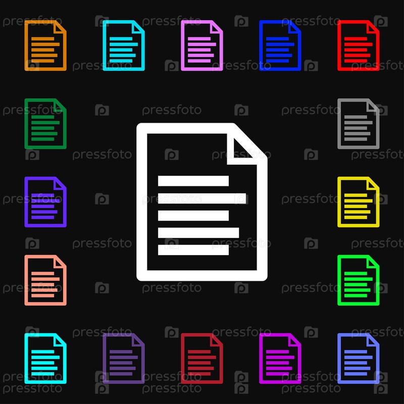 Текст файла значок знак. Много красочных символов для вашего дизайна. Вектор
