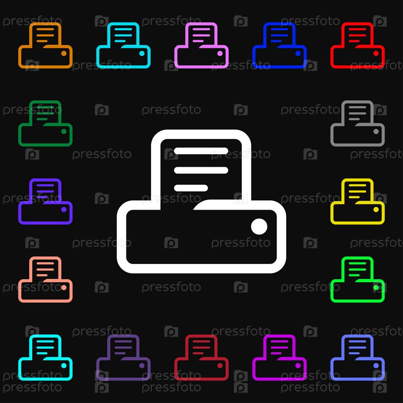 Печать значок знак. Много красочных символов для вашего дизайна. Вектор