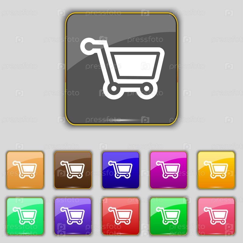 Торговый знак значок Корзина. Набор с одиннадцать цветные кнопки для вашего сайта. Вектор