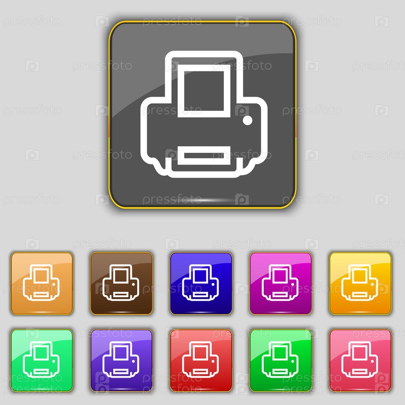 Печать значок знак. Набор с одиннадцать цветные кнопки для вашего сайта. Вектор