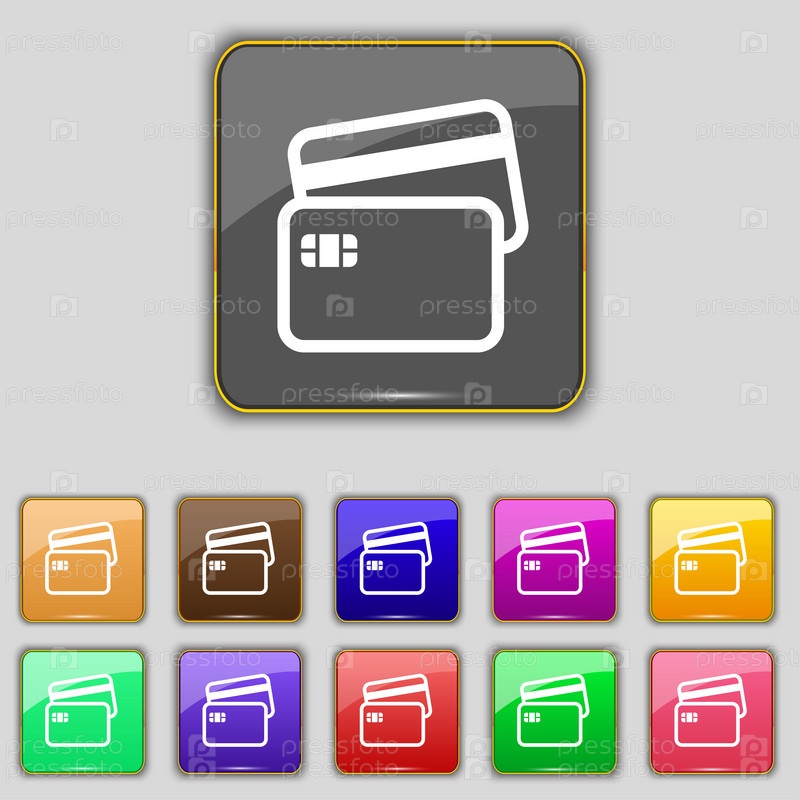 Кредитной карты значок знак. Набор с одиннадцать цветные кнопки для вашего сайта. Вектор