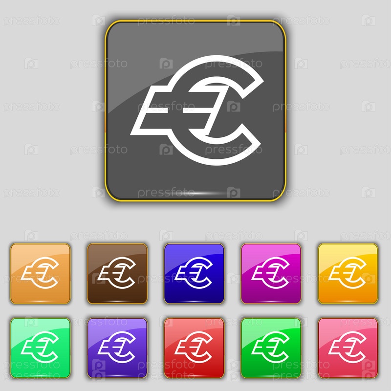 Знак евро EUR значок. набор из одиннадцати цветных кнопок для вашего сайта. вектор