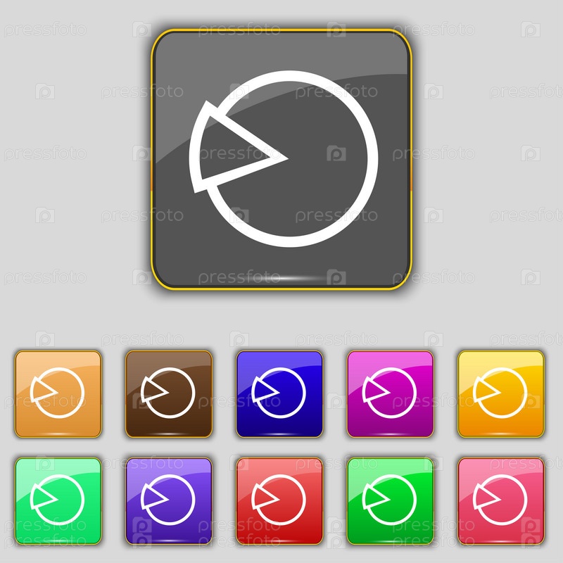 Круговая диаграмма график значок знак. Набор с одиннадцать цветные кнопки для вашего сайта. Вектор