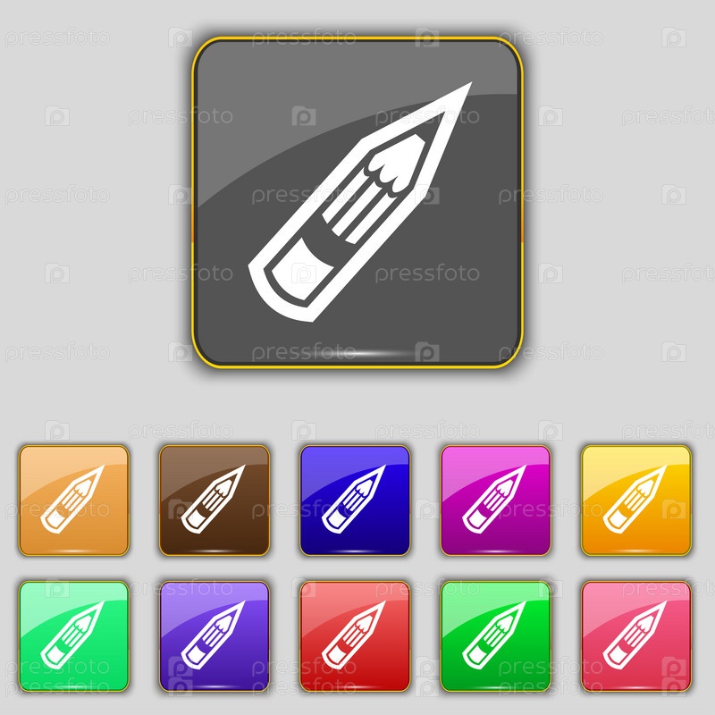Знак значок карандаша. Набор с одиннадцать цветные кнопки для вашего сайта. Вектор