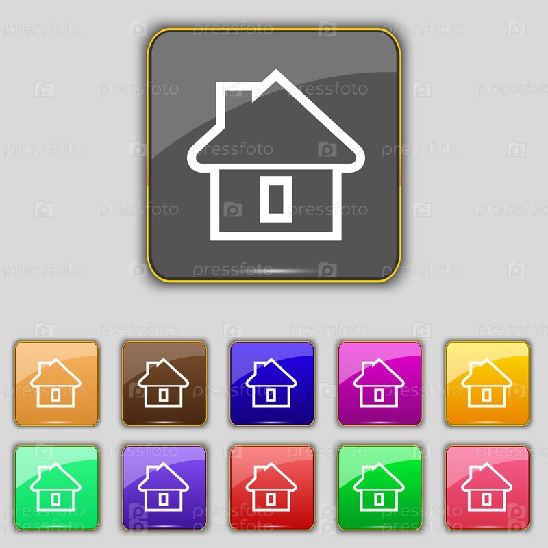 Дом значок знак. Набор с одиннадцать цветные кнопки для вашего сайта. Вектор