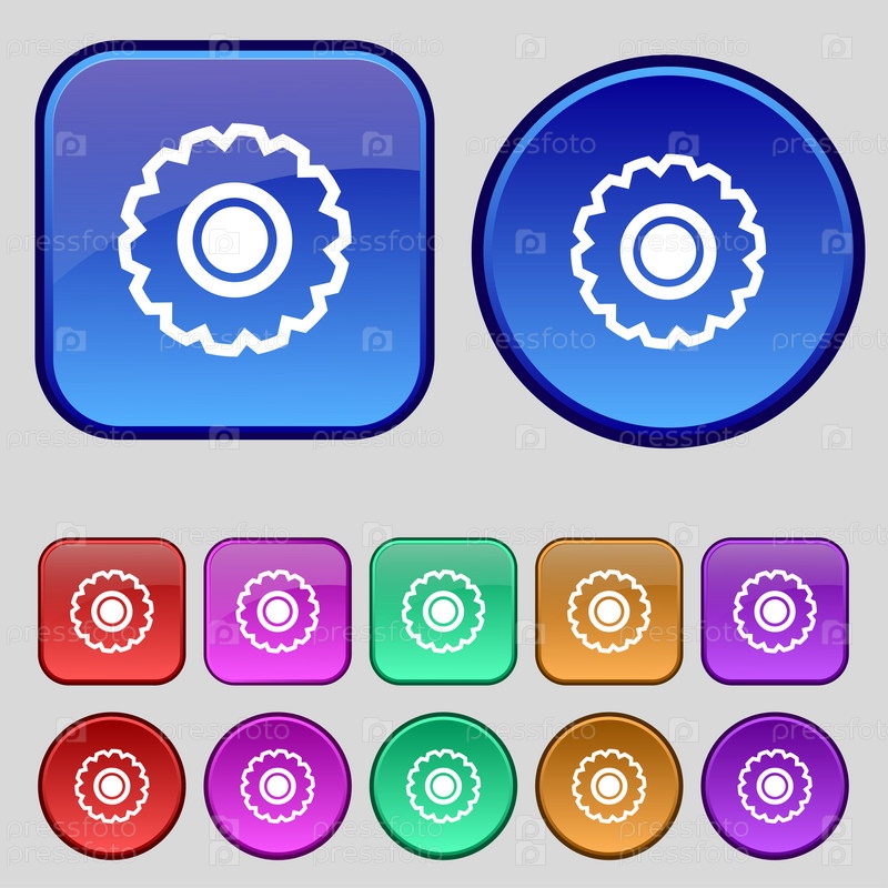 Зубчатая значок знак. Набор из двенадцати марочных кнопки для вашего дизайна. Вектор