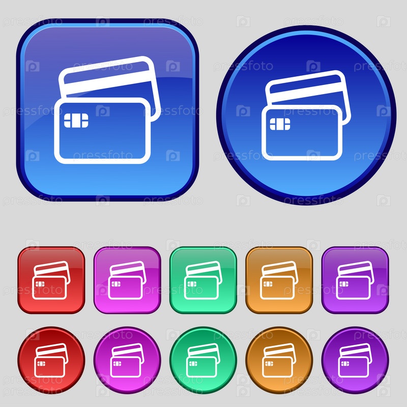 Кредитной карты значок знак. Набор из двенадцати марочных кнопки для вашего дизайна. Вектор