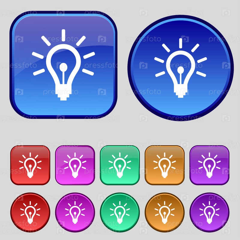 Свет лампы значок знак. Набор из двенадцати марочных кнопки для вашего дизайна. Вектор