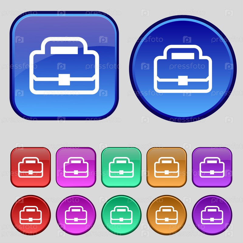 Портфель значок знак. Набор из двенадцати марочных кнопки для вашего дизайна. Вектор