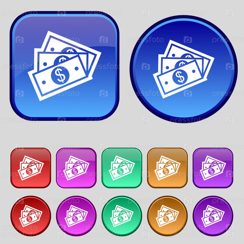 Значок знак доллара США. Набор из двенадцати марочных кнопки для вашего дизайна. Вектор