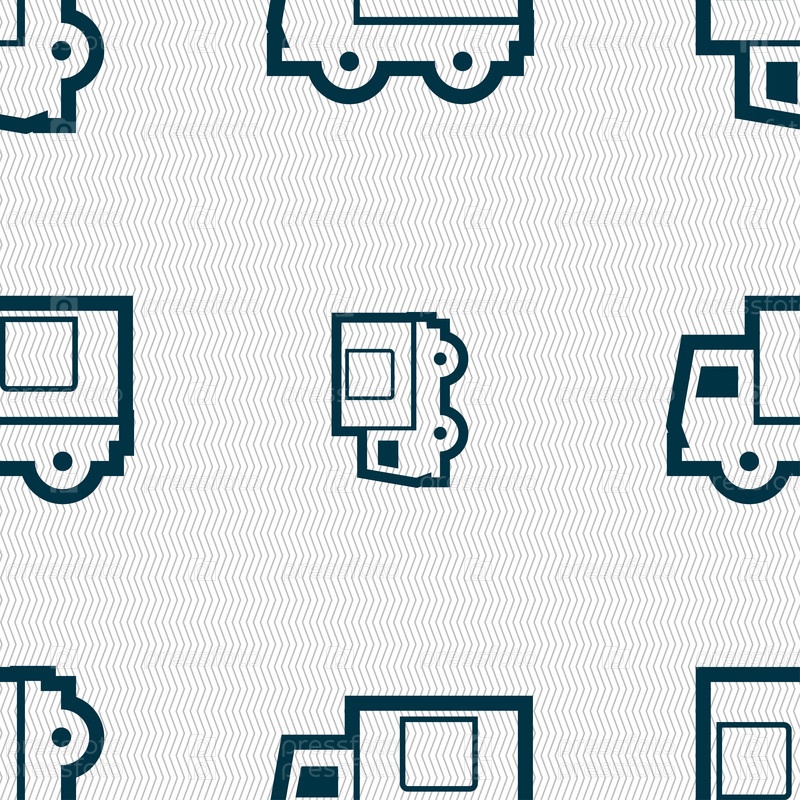 Грузовик доставки значок знак. Бесшовный фон с геометрической текстурой. Вектор