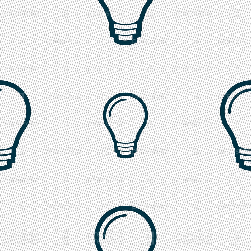 Свет лампы значок знак. Бесшовный фон с геометрической текстурой. Вектор