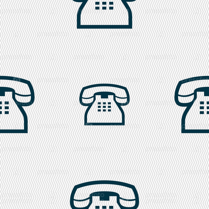 Ретро телефон телефон значок знак. Бесшовный фон с геометрической текстурой. Вектор