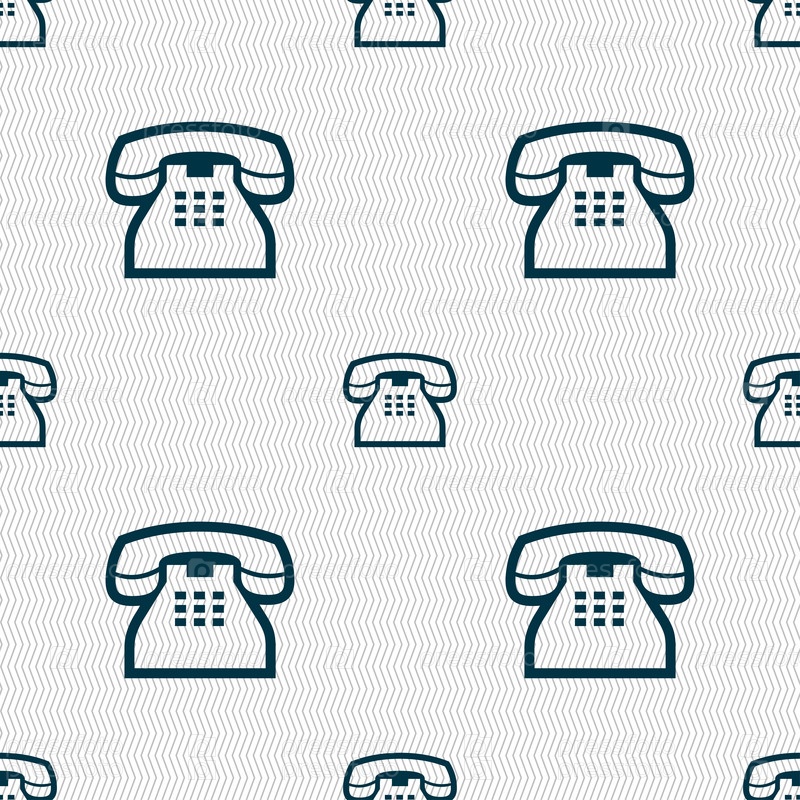 Ретро телефон телефон значок знак. Бесшовный фон с геометрической текстурой. Вектор